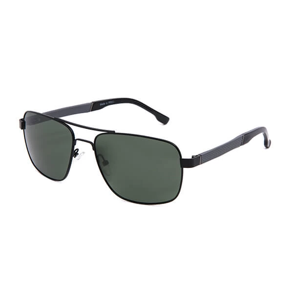 These sunglasses feature a classic aviator metal frame with a sleek double-bridge and temples adorned with plastic temple tips, special hinges, adjustable nose pads, and classic polarized lenses.