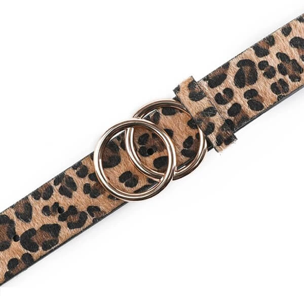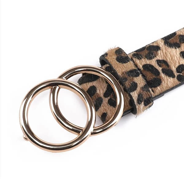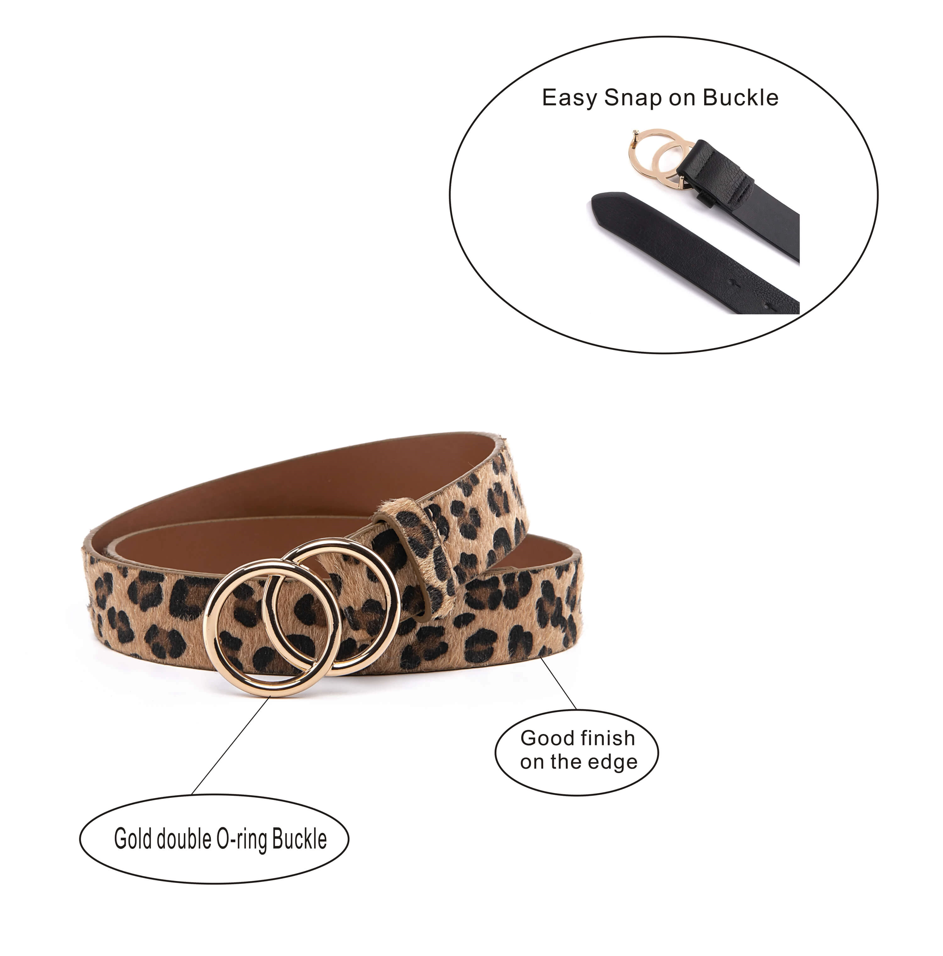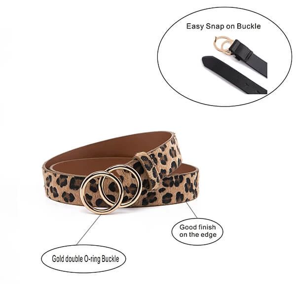 Double O Ring Gold Buckle Corset Belt for Women Leopard Print for Jeans Pants