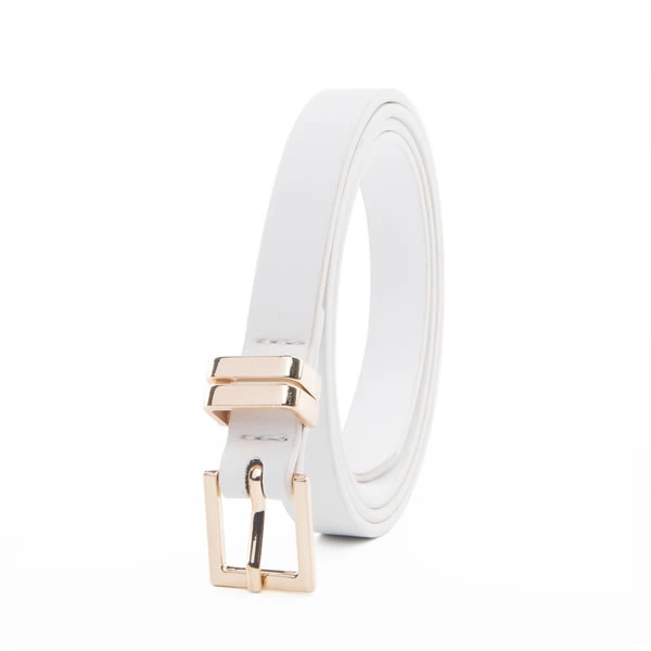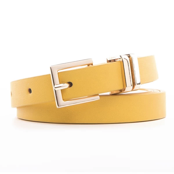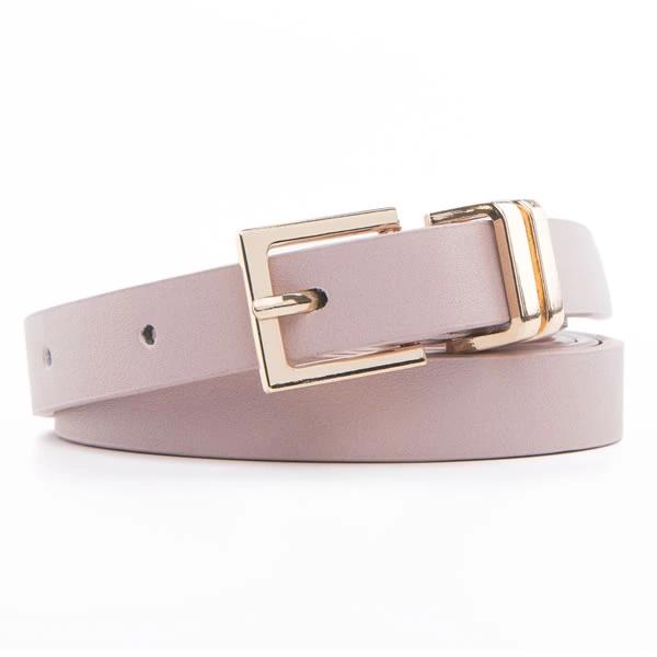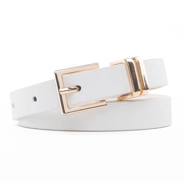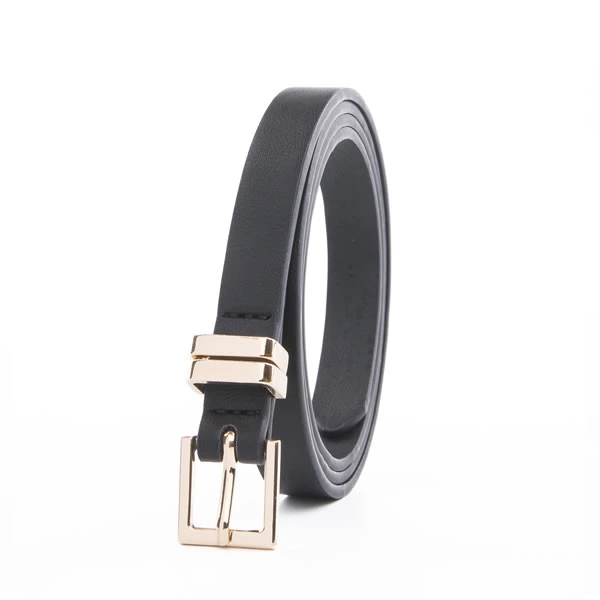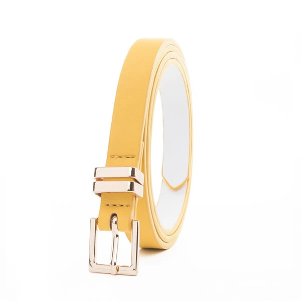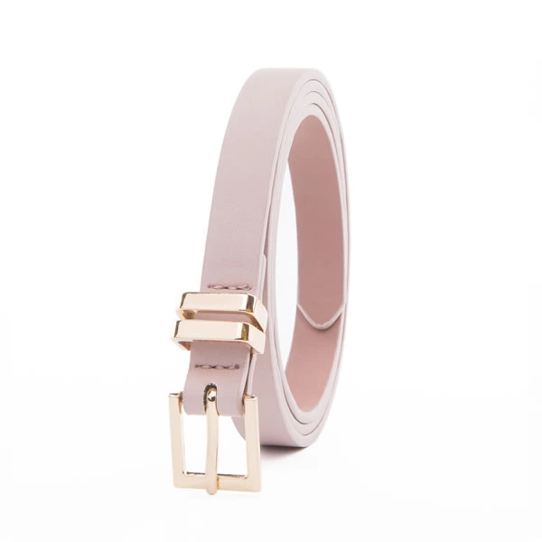Female Pin Buckle Laides PU Leather Dress Belts with Two Metal Loops
