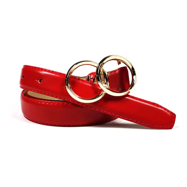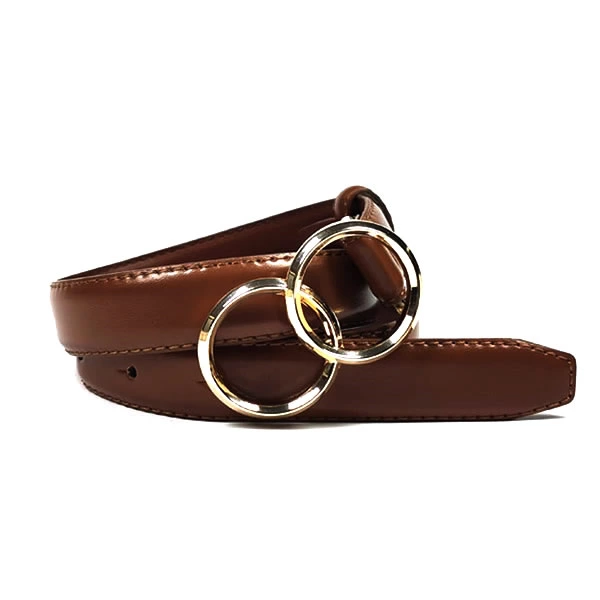 Womens PU Leather Belts with Double O-Ring Buckle for Dresses |