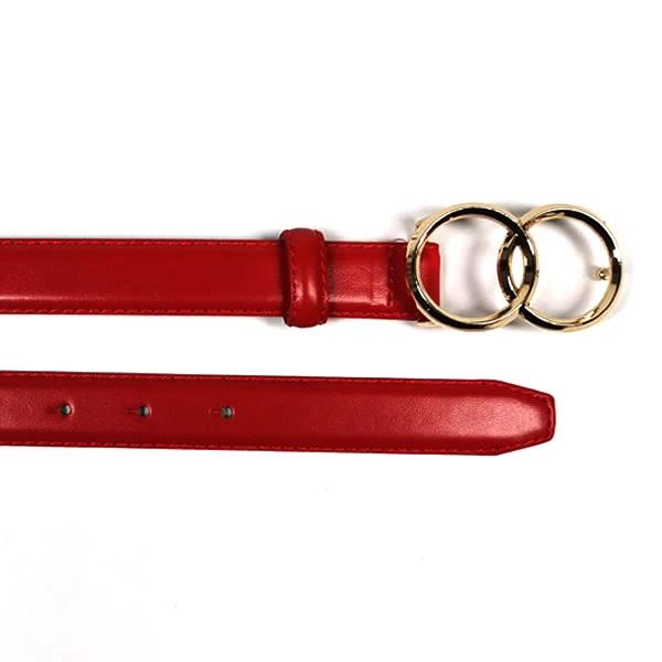 Womens PU Leather Belts with Double O-Ring Buckle for Dresses