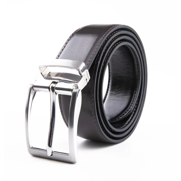 Black Brown Reversible Pin Belt Buckle Mens PU Leather Belt