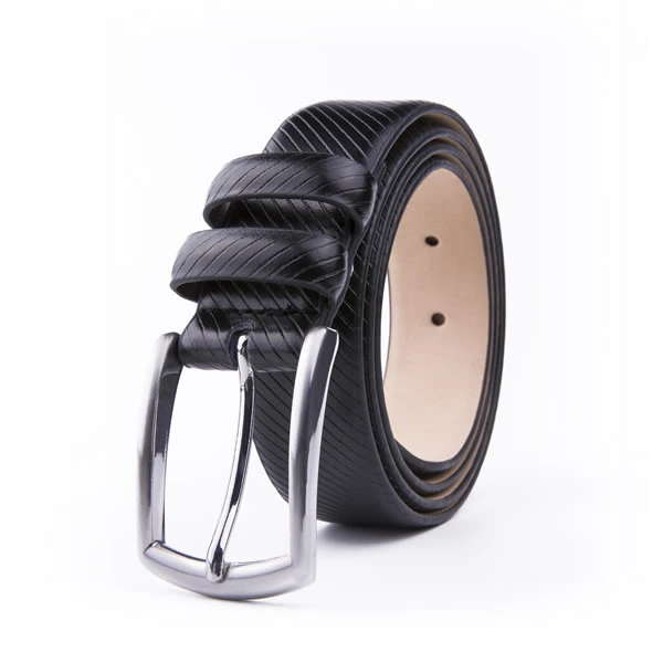 Black Dress Debossed Genuine Leather Belt Mens Deisgner Belt