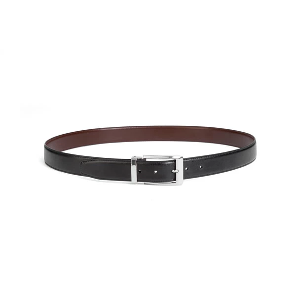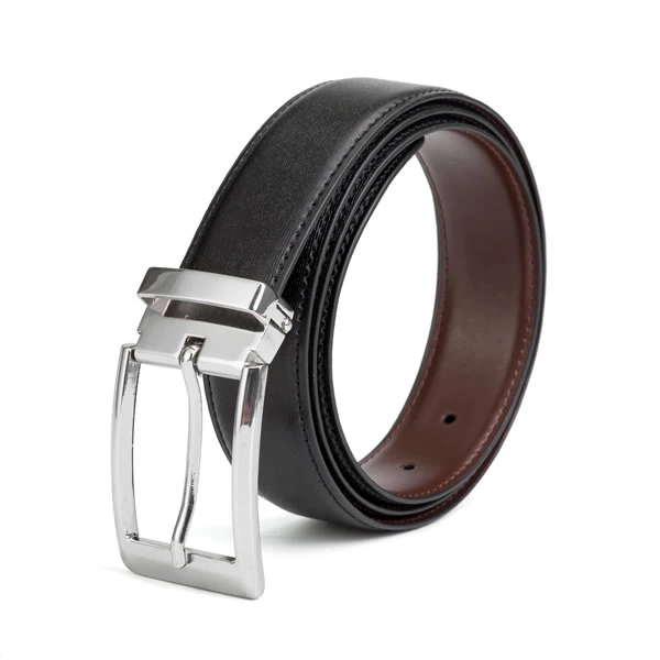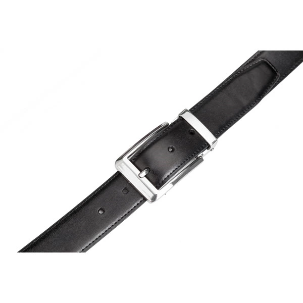 Silver Reversible Pin Belt Buckle PU Leather Belt Men