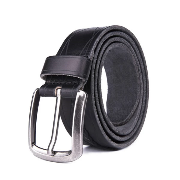 Wide Retro Casual Western Black Cow Full Grian Mens Leather Belt