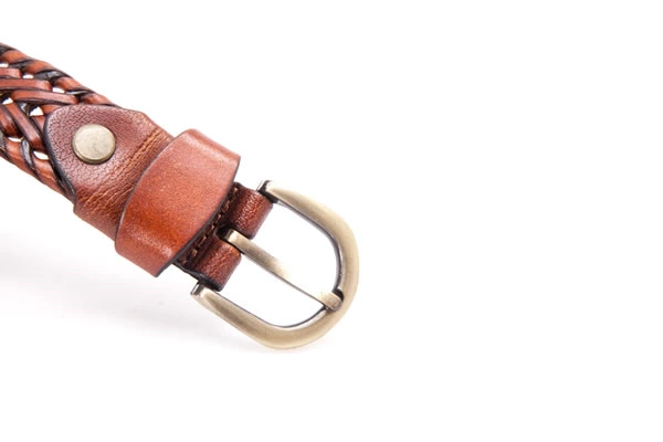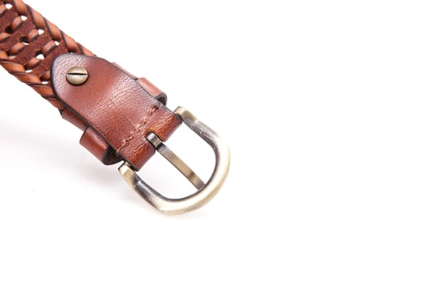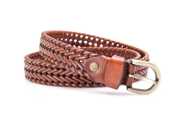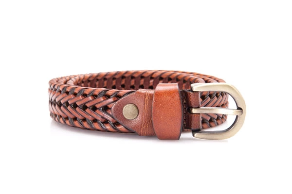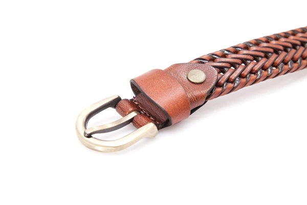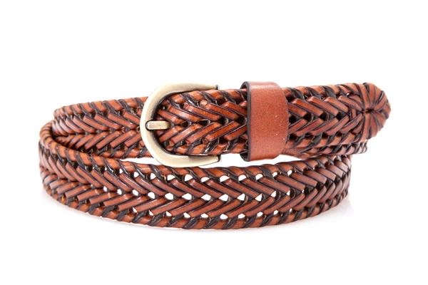 Mens Brown Germany Bonded Leather Braided Belt with A Golden Buckle