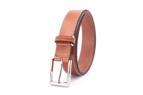 Mens Light Brown Full Grain Leather High Quality Belt with Buckle
