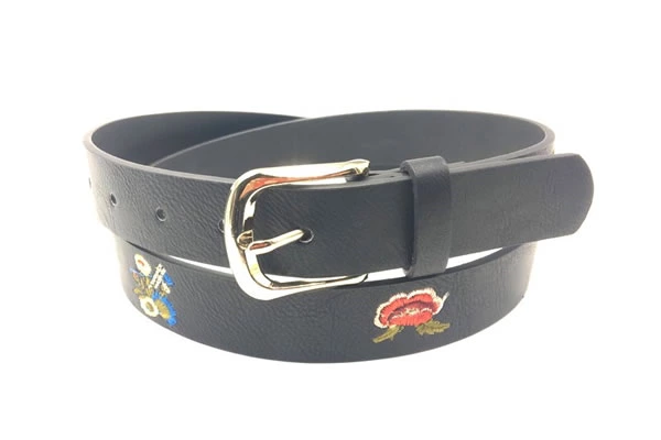 Women Black Casual Wide Embroidery Leather Belt