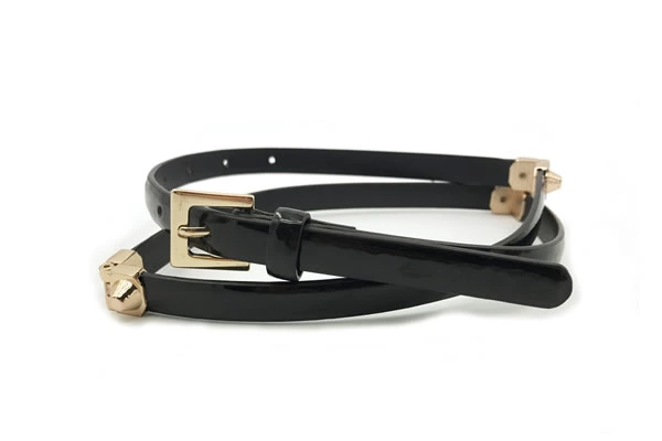 Womens Black Skinny Fashion Belt With Gold Buckle