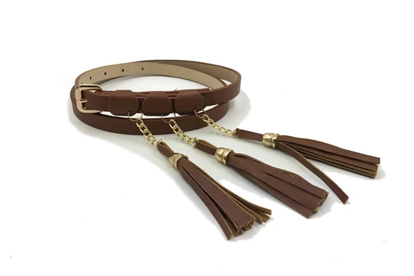 Womens Brown Leather Chain Belt With Gold Buckle