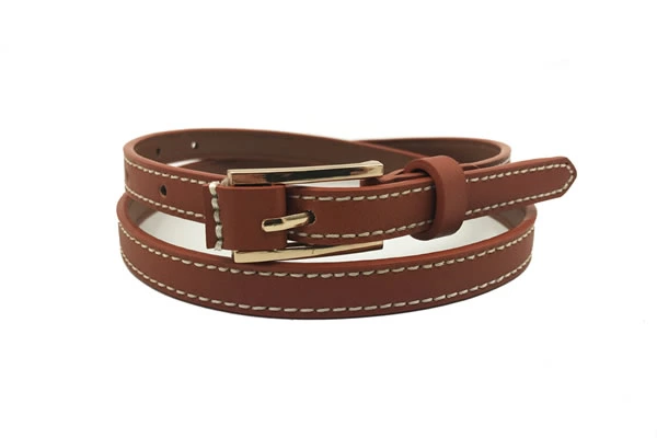 Womens Fashion Thin Leather Belt With Gold Buckle