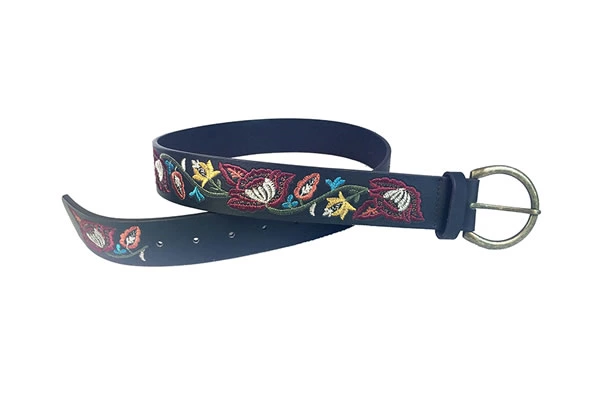 Womens Leather Embroidary Belt With Buckle