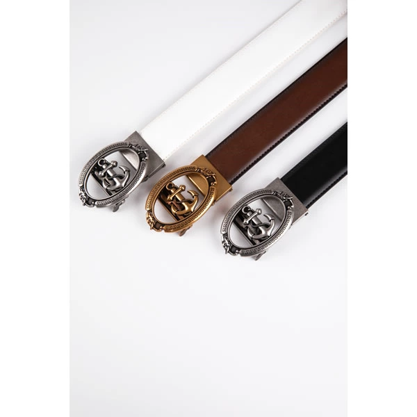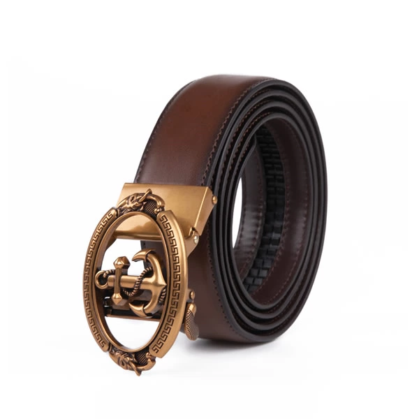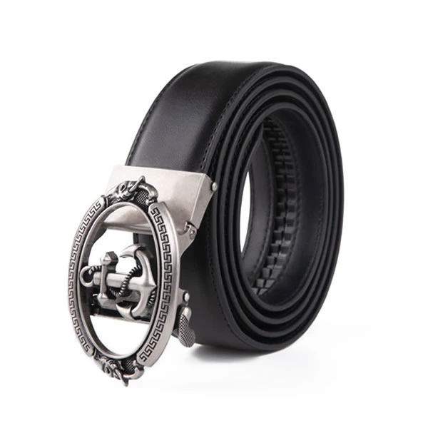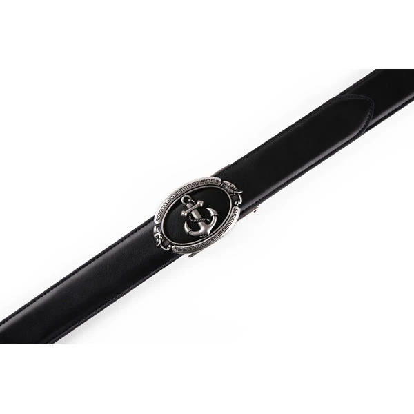 Black Anchor Automatic Buckle Ratchet Mens Leather Belt