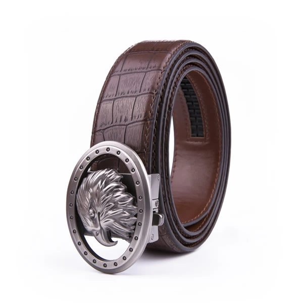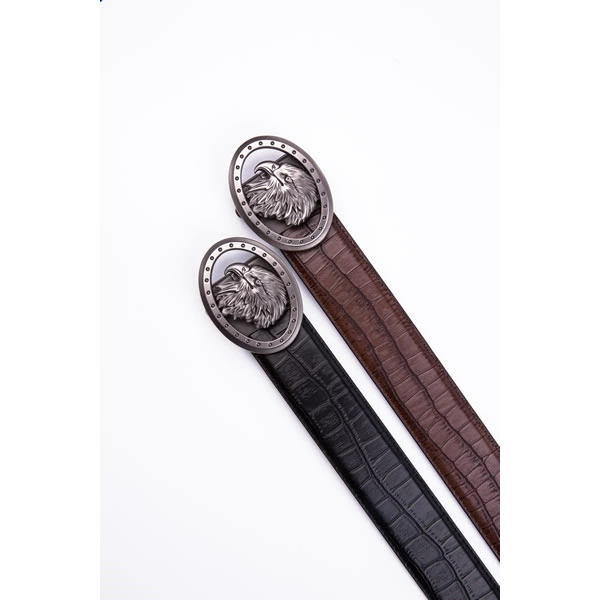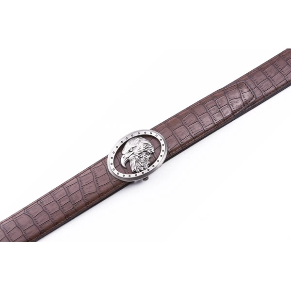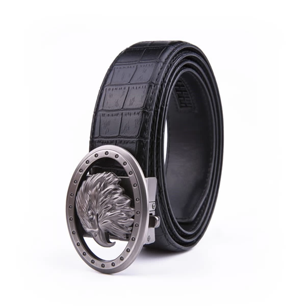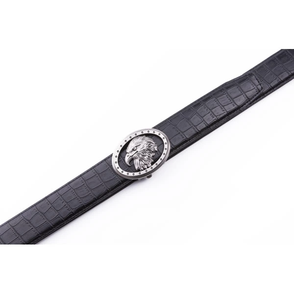 Black Eagle Antique Silver Retro Westen Crocodile Automatic Mens Leather Belt