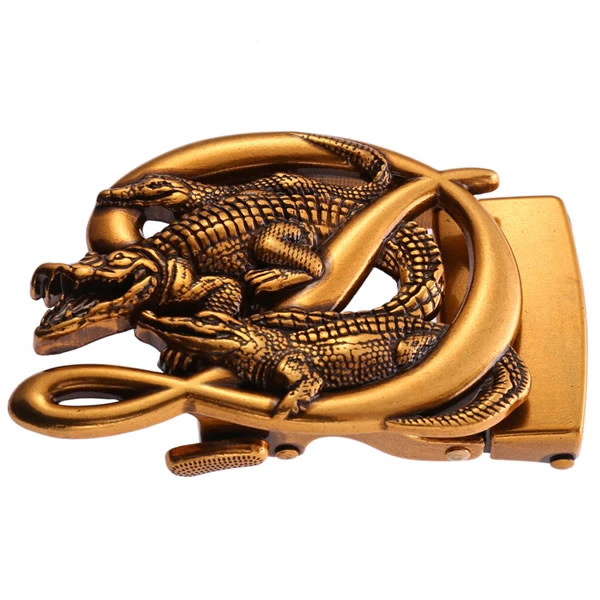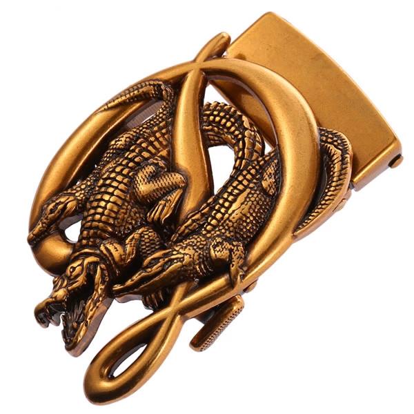 Brass Crocodile Ratchet Automatic Slide Belt Buckle Cowboy Western Belt Buckles Big