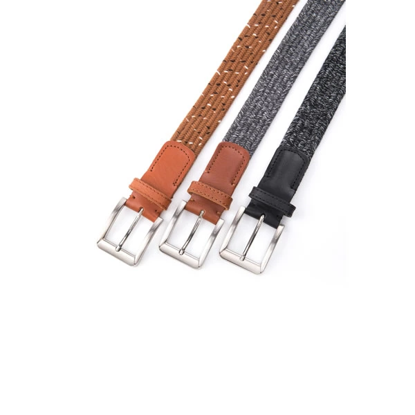 Casual Golf Multicolor Cotton Woven Elastic Stretch Leather Belt Men