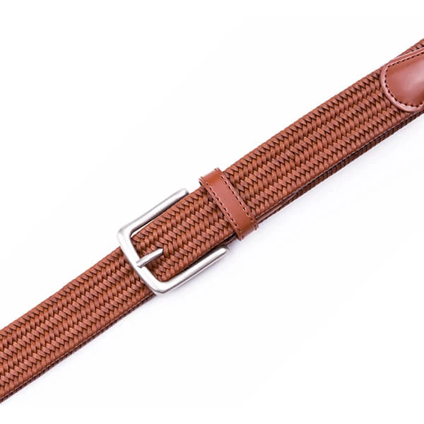 Vintage Bonded Leather Braided Belt Elastic Stretch Belt