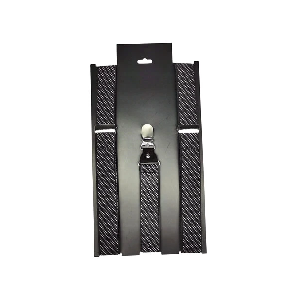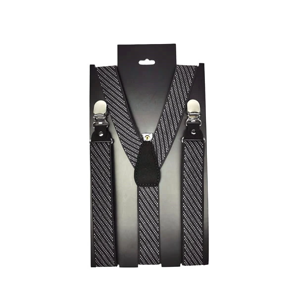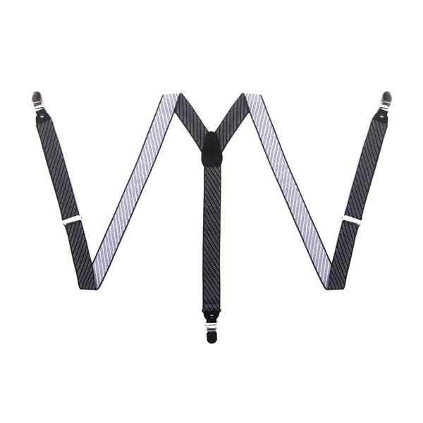 Adjustable Elastic Black and White Striped Mens Suspenders